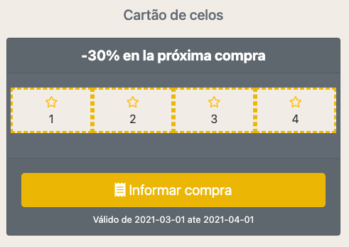 As embalagens dentro da plataforma Fidelity Stamp são flexíveis e podem ser personalizadas de acordo com a estratégia selecionada para fazer com que os clientes façam uma compra repetida.